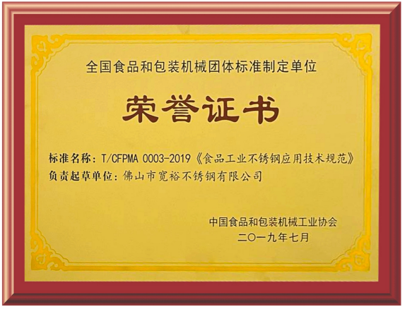 2023年2月21日,中國食品和包裝工業(yè)協(xié)會于佛山·順德北滘組織召開《綠色設計產(chǎn)品評價技術規(guī)范微機組合秤》團體標準研討會,寬裕管業(yè)黃寬銘先生受邀出席研討會。寬裕管業(yè)作為T/CFPMA 0003-2019《食品工業(yè)不銹鋼應用技術規(guī)范》負責起草單位,在機械備用不銹鋼管的生產(chǎn)制造領域具有12年經(jīng)驗,為包裝機械、自動化設備、電鍍設備等生產(chǎn)廠家提供設備用不銹鋼管整體解決方案。