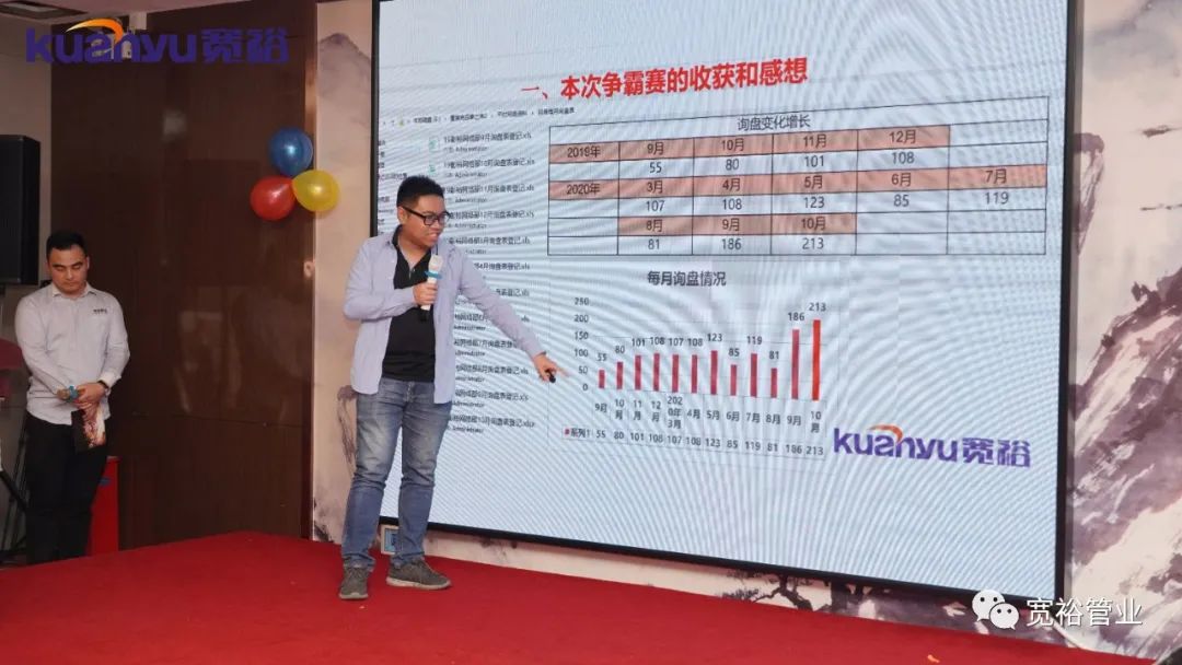 十月份頒獎結(jié)束后,寬裕管業(yè)集團總經(jīng)理黃寬銘先生對于十月業(yè)績爭霸賽做出了總結(jié),黃寬銘先生表示到,爭霸賽是一場借假修真的戰(zhàn)役,更是一場武林大會,也告訴了我們稱為武林高手的秘籍。他寄語寬裕人: