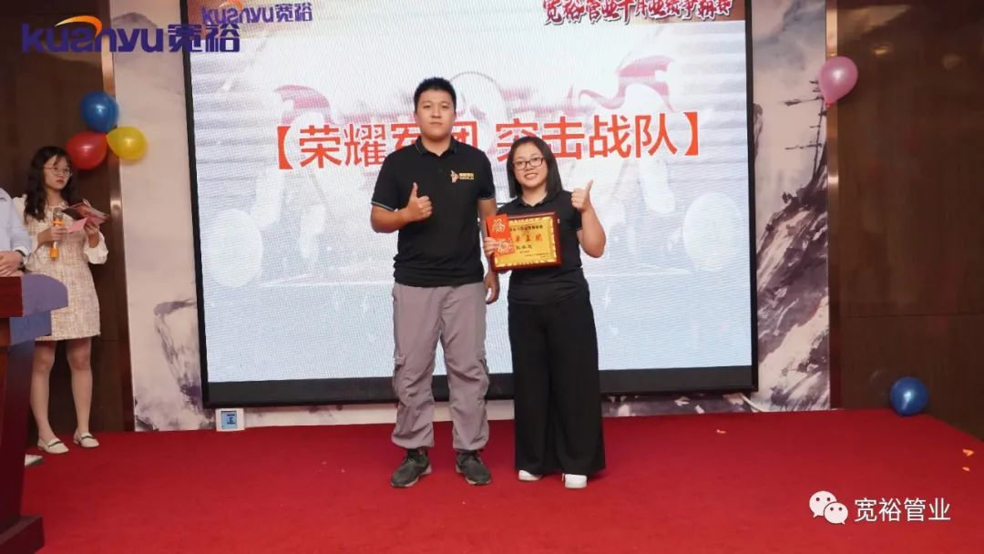 2020年11月10日下午3點,寬裕管業(yè)十月業(yè)績爭霸賽頒獎盛典在維也納珠江廳舉行,為本次爭霸賽表現(xiàn)優(yōu)異的同事們進行嘉獎,這次爭霸賽中英雄輩出,涌現(xiàn)了百萬英雄、五十萬旗手、亮劍英雄、明日之星等。