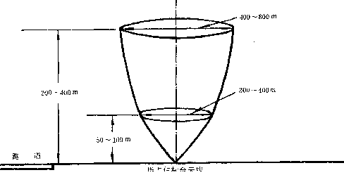 4.3.3 指點(diǎn)信標(biāo)臺向空中發(fā)射垂直扇型波束。其覆蓋區(qū)為,高度50—100m時,縱向?qū)挾葹?00—400m;高度200—400m時,縱向?qū)挾葹?00—800m(圖 5)。