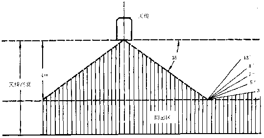 5.7.2  以天線為中心,半徑150m以內(nèi)不得有樹木,距大線150~300m之間不得有高于9m的獨(dú)立樹木,300m以外樹木的高度不應(yīng)超過以天線項(xiàng)部為準(zhǔn) 2o垂直張角。