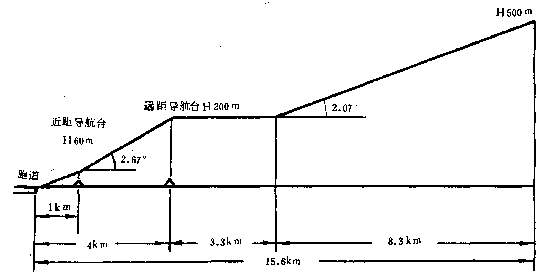 B1  運(yùn)輸機(jī)按遠(yuǎn)、近距導(dǎo)航臺進(jìn)場著陸時的下滑線(下圖)。