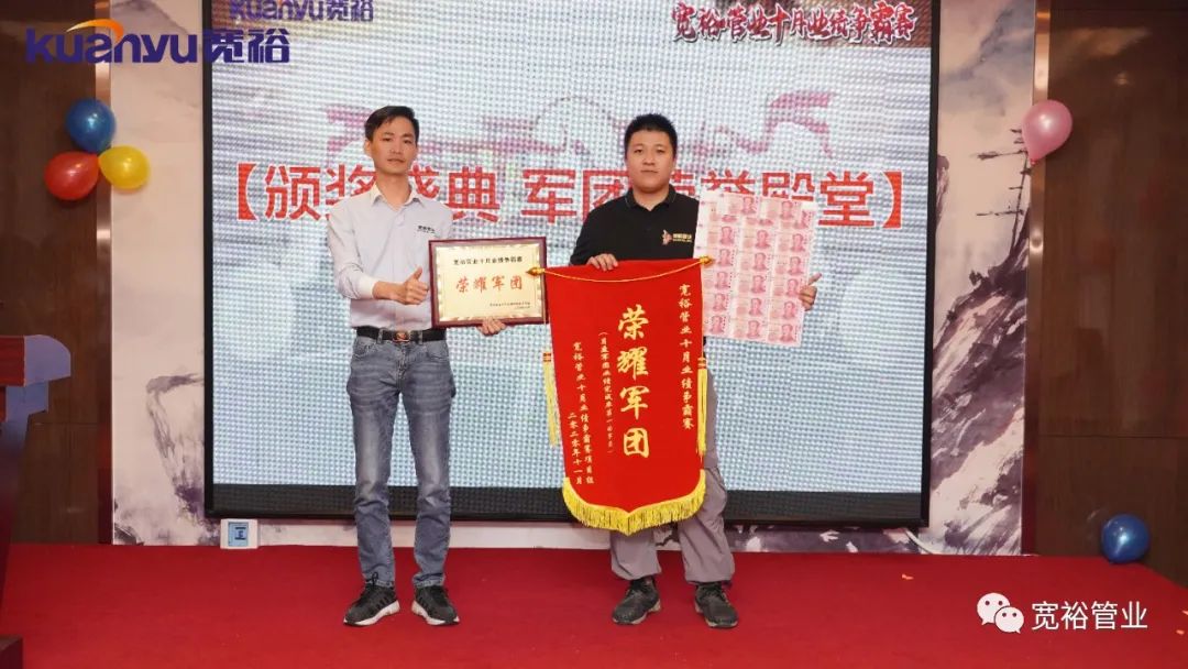 2020年11月10日下午3點,寬裕管業(yè)十月業(yè)績爭霸賽頒獎盛典在維也納珠江廳舉行,為本次爭霸賽表現(xiàn)優(yōu)異的同事們進行嘉獎,這次爭霸賽中英雄輩出,涌現(xiàn)了百萬英雄、五十萬旗手、亮劍英雄、明日之星等。
