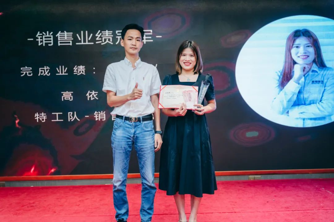 她帶領(lǐng)外貿(mào)團(tuán)隊(duì)開拓國外市場,同時(shí)打兩場仗,我們無法想象,一個(gè)只是97年的女孩子,怎么能爆發(fā)出這么大的能量,用永不言棄,奮斗到最后一刻,帶領(lǐng)團(tuán)隊(duì)達(dá)標(biāo),并獲得我們本次活動(dòng)的冠軍。
