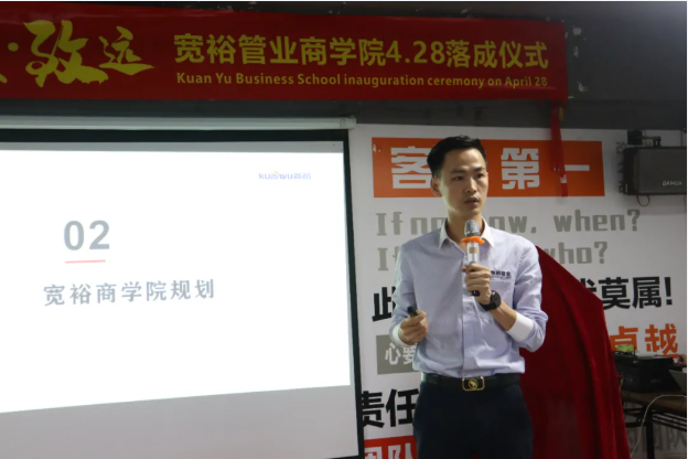 揭牌儀式中,寬裕管業(yè)總經(jīng)理黃寬銘先生對商學(xué)院的規(guī)劃進(jìn)行了介紹,并說道:寬裕成立于2010年,基本上最早的一批人都是“草根”,但是我們又有一顆不平凡的心,不平凡的夢,這就是我們打造管裕商學(xué)院一個非常重要的原因,只有我們寬裕人持續(xù)學(xué)習(xí),持續(xù)提升,才能去完成我們偉大的愿景,我們要成為一家世界級不銹鋼全鏈制造與服務(wù)提供商,這對于寬裕人的品質(zhì)要求是非常高的,把社會上好的東西帶進(jìn)我們公司,在這個過程中,我們也會邀請各個行業(yè)的大咖過來分享。相信我們不斷持續(xù)學(xué)習(xí),未來必定會在行業(yè)內(nèi)有一定的影響力。商學(xué)院的建設(shè)任重道遠(yuǎn),我是第一屆院長,希望未來有更多的院長,帶領(lǐng)寬裕人不斷進(jìn)步不斷成長,培養(yǎng)出一批又一批獨特的寬裕人才,相信未來的寬裕人才濟濟。